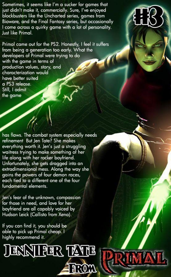 During the 2010 holiday break J did a countdown of the top ten women in video games for 2010. The only rules were: