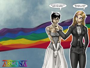 Sometimes You Can't Go Home Again, a Mysteries of the Arcana fanfiction written by Ayshara.![]() | Questions After chapter three we took a break and answered some questions. The series was written by J and illustrated by Tiffany Munroe. It contains a bit more fan service than we normally have in the comic, including some lesbian elf kisses. |