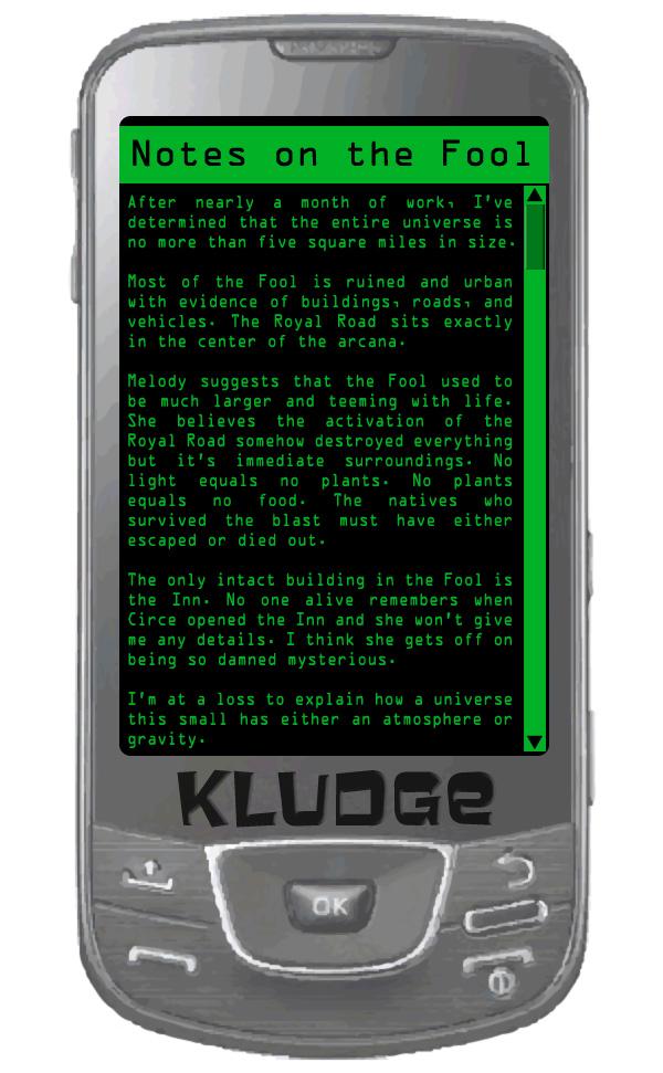 ![]() | Kludge's Notes Kludge (that guy who explained the arcana to Theresa way back one page 15 or so) keeps notes on all the arcana he visits on his PDA. Here's a few of them for your amusement. Click on the image to visit them. The MotA banner will take you back to the main comic. |